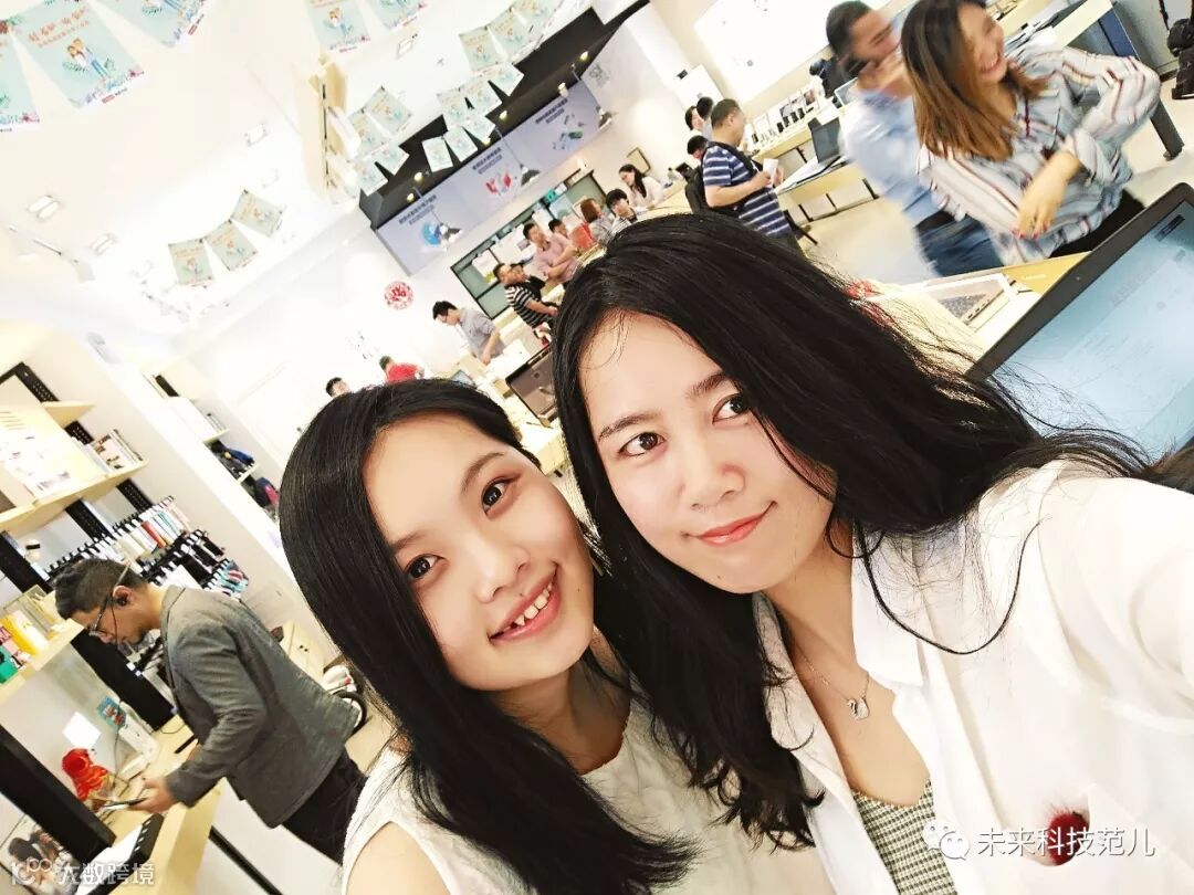 联想中科店内自拍的小姐姐们