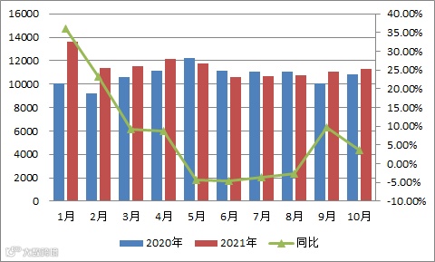 2、2021年10月与2020年10月同比
