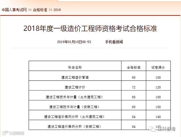 由此可知,2018年一级造价工程师合格标准: