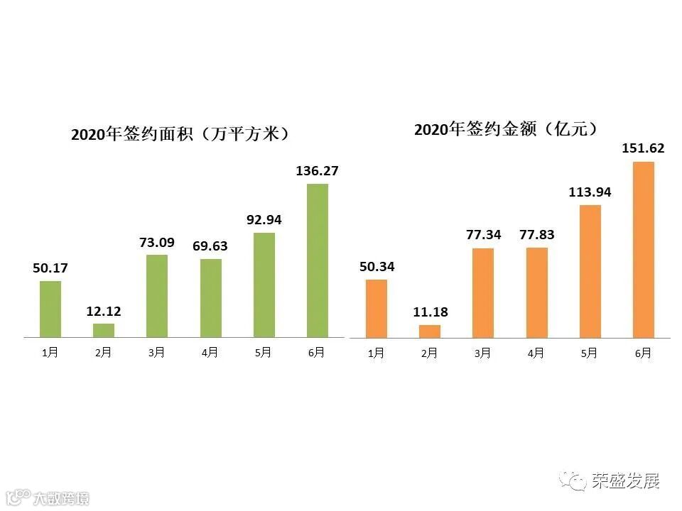 2020年6月,公司实现签约面积136.27万平方米,同比增长5.84%;签约金额151.62亿元,同比增长4.31%。签约面积、签约金额双双创出年内单月新高。