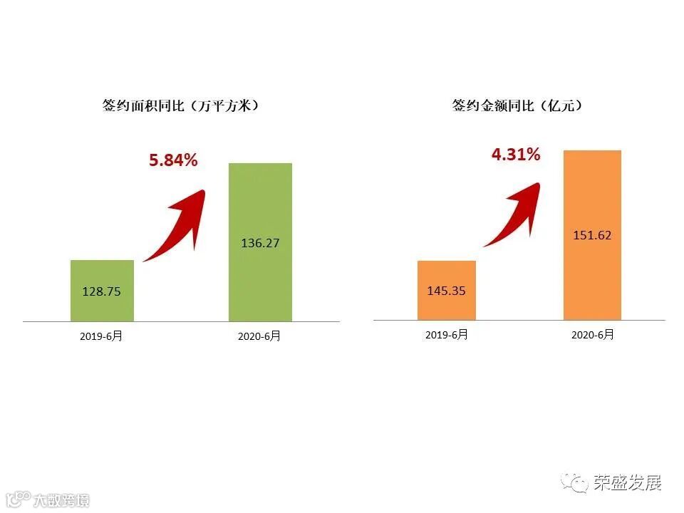 2020年1-6月,公司累计实现签约面积434.22万平方米,同比增长2.73%;累计签约金额482.25亿元,同比增长3.54%。