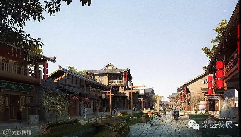 民俗风情街:沿项目两侧的水系布局,建筑风格类似丽江的商业街,满足业主和游客在餐饮、娱乐、客栈住宿方面个性化需求。