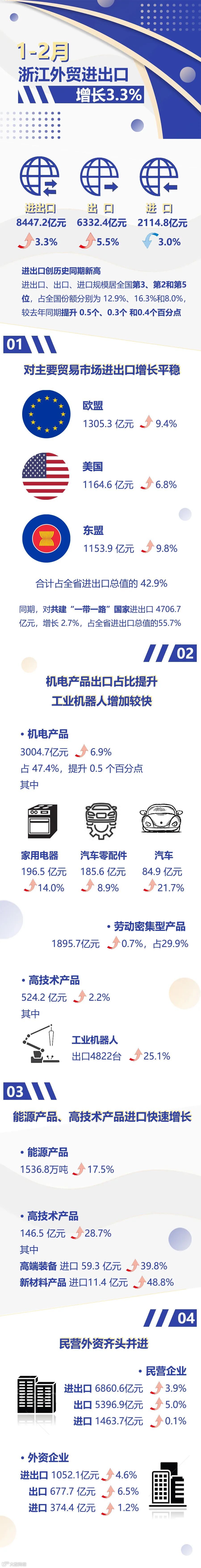 【资讯】1-2月浙江外贸进出口增长3.3%,总值创历史同期新高!