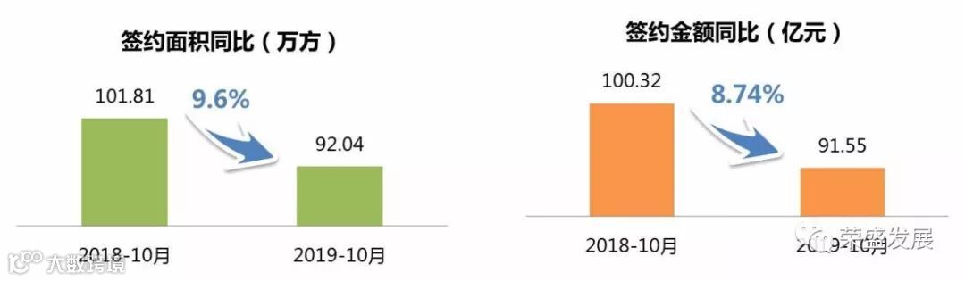 2019年10月,公司实现签约面积92.04万平方米,同比下降9.60%;签约金额91.55亿元,同比下降8.74%。