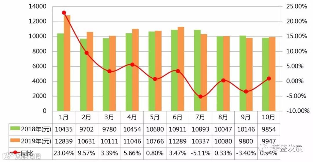 4、2019年1-10月单月均价及2018年同比情况