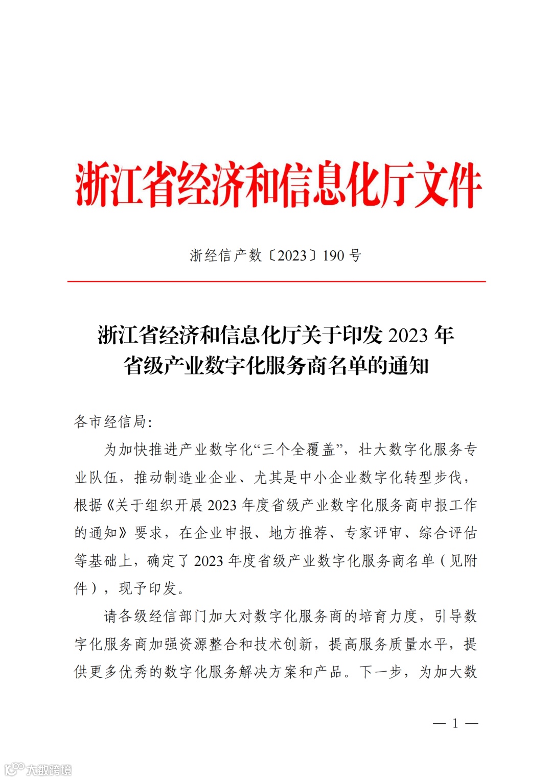 此次评选名单根据《关于组织开展2023年度省级产业数字化服务商申报工作的通知》要求,在企业申报、地方推荐、专家评审、综合评估等基础上生成,