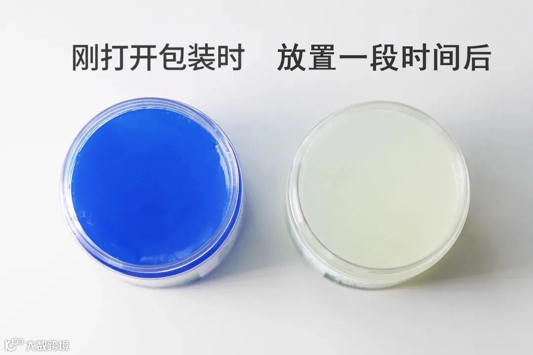 过不了多长时间,你就会发现,蓝色膏体会慢慢变白,然后再慢慢挥发/消失。