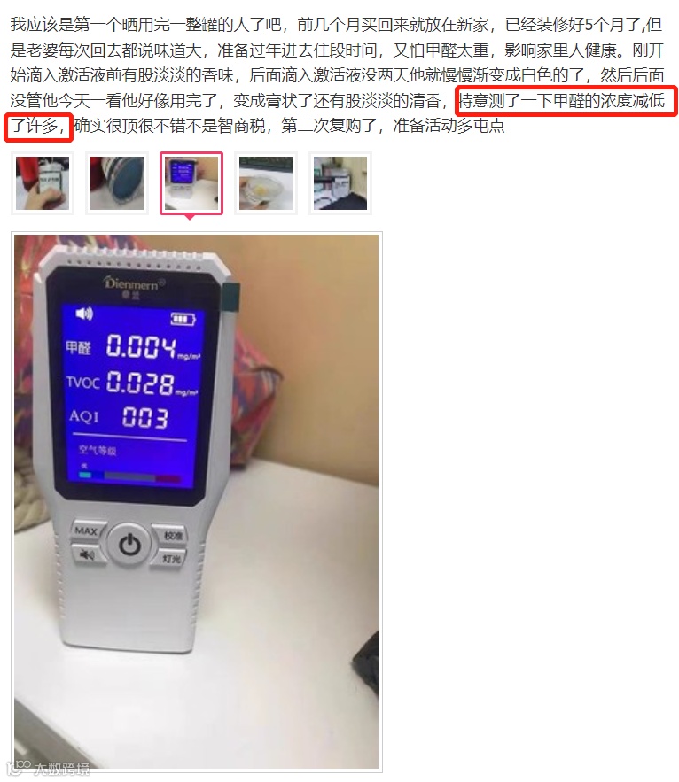 “测了一下甲醛浓度降低了许多”