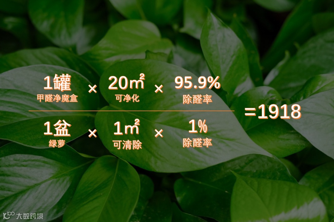 24小时就可以净化掉95.9%的甲醛,1罐相当于1918盆绿萝的净化率。