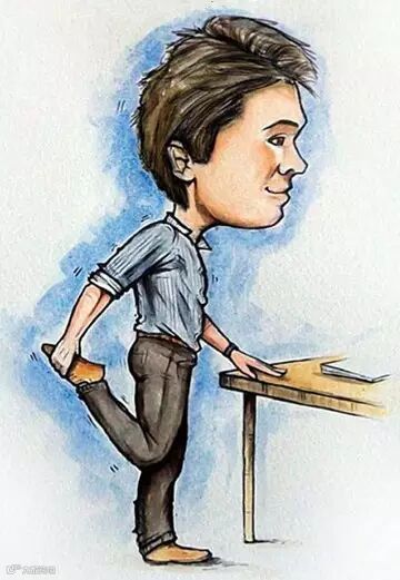 站在办公桌前,左手放在桌子上,以保持身体平衡;左腿单腿站立,右脚后跟尽量向后抬至臀部;右手抓住右脚(如图4),此时感觉右大腿前侧肌肉(股四头肌)拉伸;保持20秒,重复3次,然后换另一侧,重复相同动作。