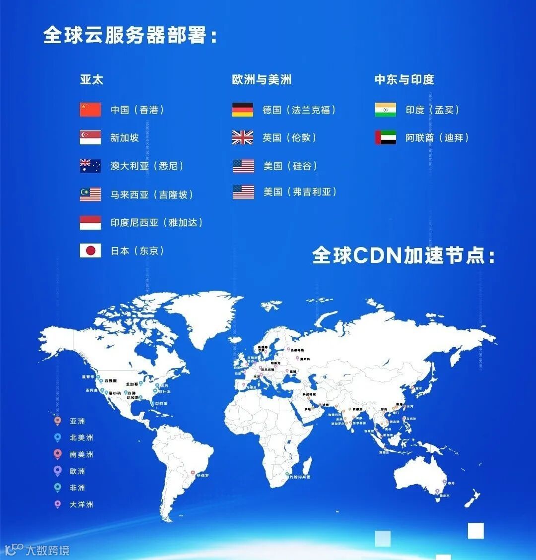 全球搜网站搭建实施方案,十二大全球性云服务器部署,四十七处全球性cdn节点提速网络节点,能够让国外独立站在确保安全性的情形下,完成快速浏览!