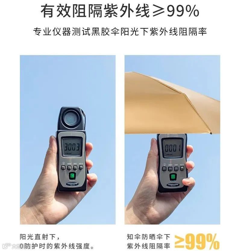 针对遮光性我们做了一个小测试,室外的阳光热烈且刺眼,但是将这款迷你油画伞罩上去之后,