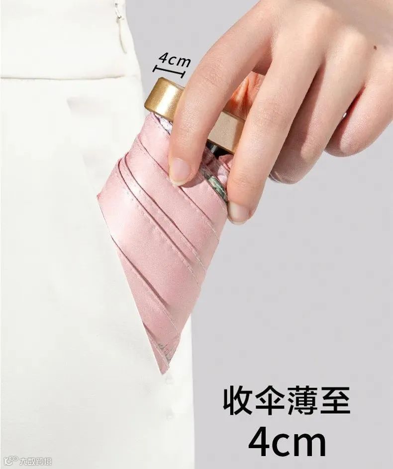 如此坚韧的伞骨,才造就了这款如此迷你的折叠伞,它折叠后高度15厘米,厚度4厘米,