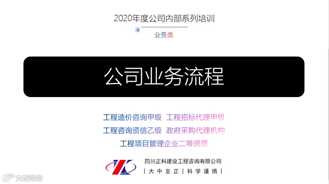 为帮助员工精进业务水平,提高专业素养,为客户提供更优质的服务,四川正科建设工程咨询有限公司将为员工持续提供培训课程,敬请期待!