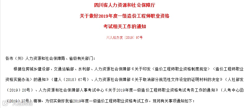 2019年度一级造价工程师职业资格考试时间统一定于2019年10月26、27日,具体安排如下:
