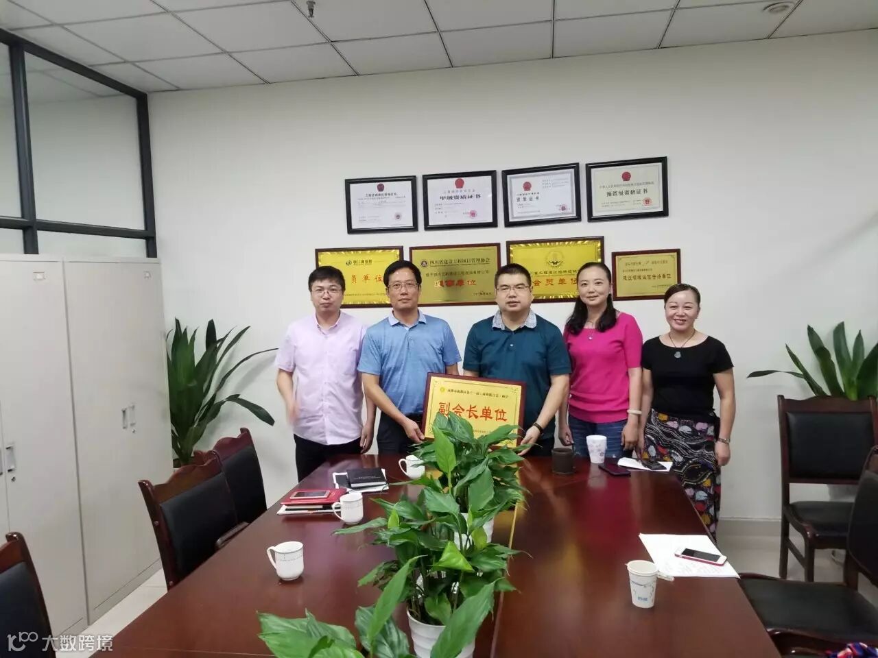 8月31日上午,区政协副主席,区工商联主席(会长)陈善彬、区工商联副主席兼秘书长彭先周一行到公司进行调研,向我公司授予和颁发“成都市新都区第十一届工商业联合会(商会)副会长单位”荣誉证书。公司董事长支征兵、总经理李利、和佳公司总经理曾义以及和佳公司常务副总经理巫俊彦参加了座谈会。