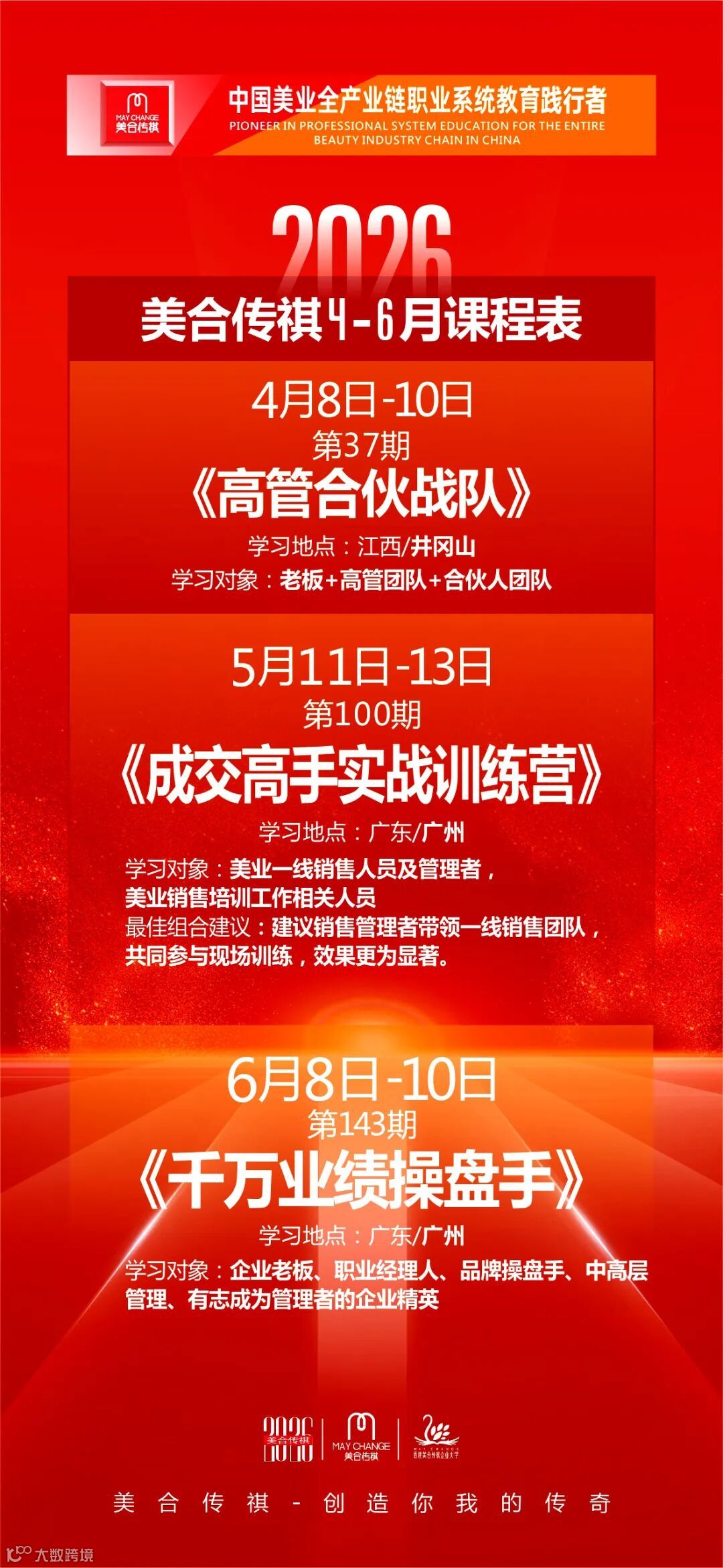 2026年4月-6月,美合传祺课程排期如下: