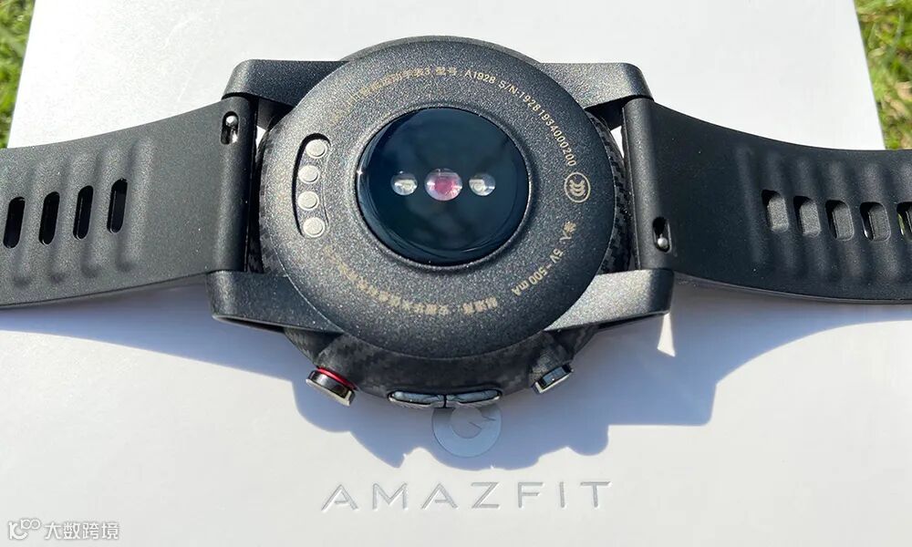 表盘背面,有PPG传感器和四个充电金属触点。