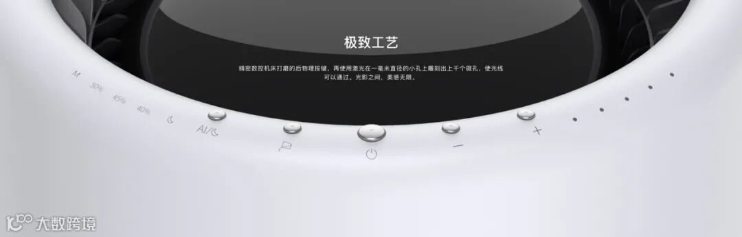 加湿器作为家庭空气补水的重要伴侣,颜值很重要,绿洲AirWater A3采用极简纯白筒型外观设计,黑色加水穹顶,灯圈显示水量,融实用性和美观一体,与家装完美搭配。精湛的工业设计一直是秒新追求,整个操作界面也简洁明了,方便老人小孩使用。值得一提的是金属按键,还采用了激光微孔技术,把上千个微孔雕刻在仅1毫米直径的小孔上,方便透光,让夜间操作也轻松。