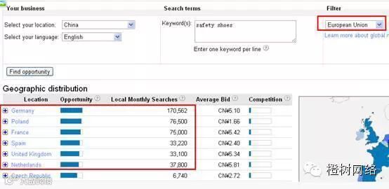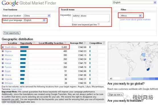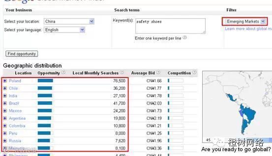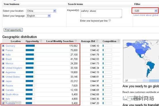Google Market Finder可以提供来自全球互联网搜索的数据。按照总的搜索量、建议出价和竞争状况对每个市场的商机进行排序。借助Google“全球商机洞察”,一些曾经困扰中小企业的诸如“这个市场的竞争状况如何”、“该地区对产品的需求与另外一个区域相比如何”、“在这个新市场进行广告宣传需要多少成本”等问题,将轻易解决。
