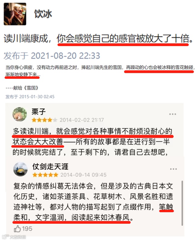 “捧起《雪国》,再躁动的心,也会被冰释的雪花触碰,渐渐地安静下来......”