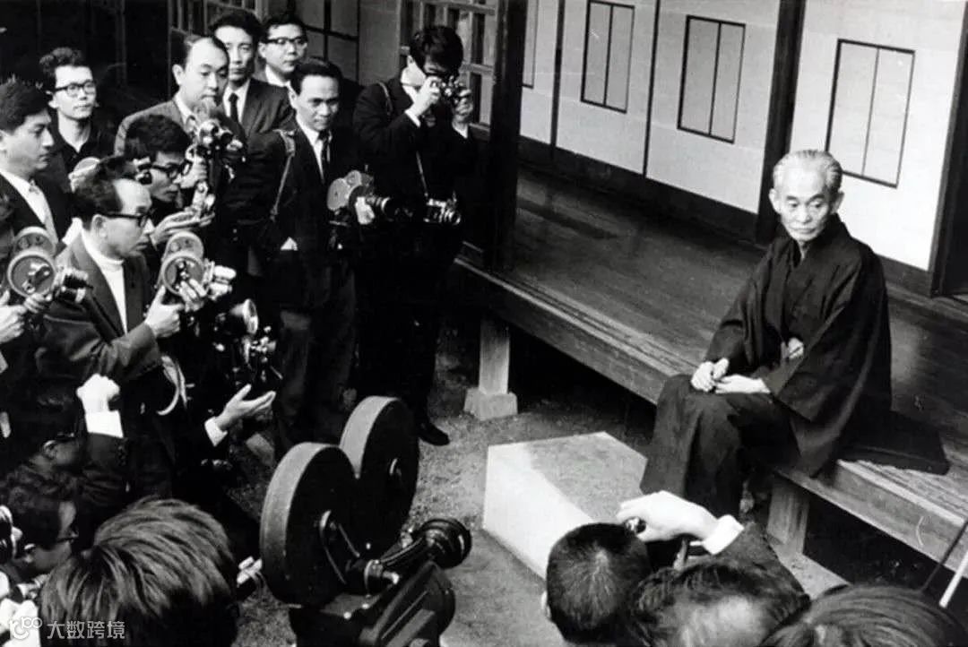 *川端康成在获得“诺奖”后,在家接受记者的采访