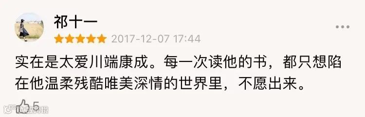 用读者的话说:“川端康成很少用手去抚摸事物,而是用目光和内心的波动去抚摸事物。”
