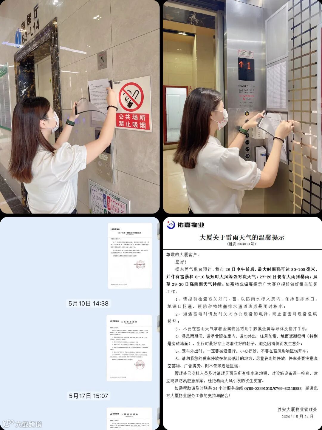 暴雨多发季节,客服中心及时发送、张贴各类温馨提示,提醒广大客户提前做好相关的防御工作;