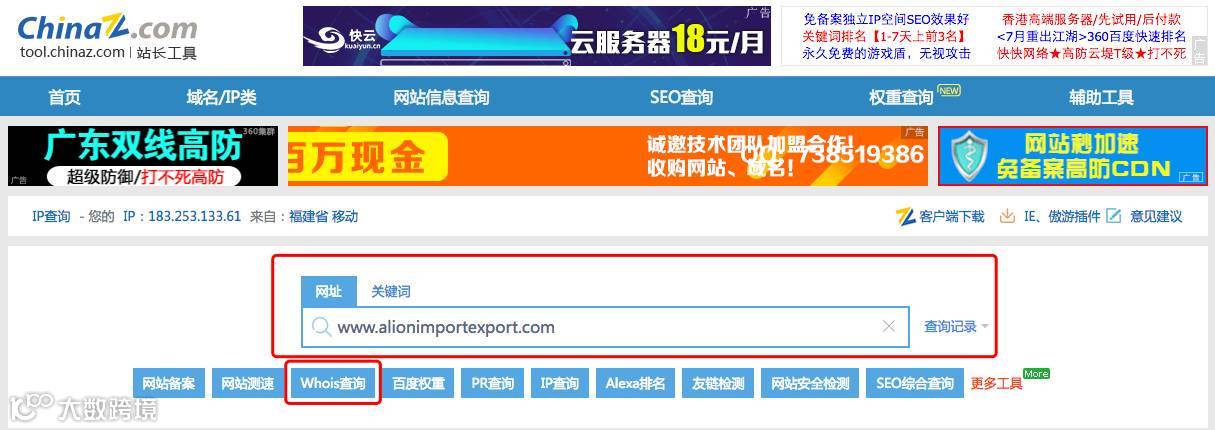 站长工具:调取买家网站的注册人联系信息,判断或寻找关键人。