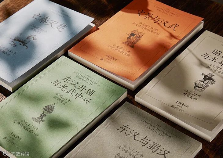 五本书五个颜色,表现大汉由盛及衰的不同阶段。