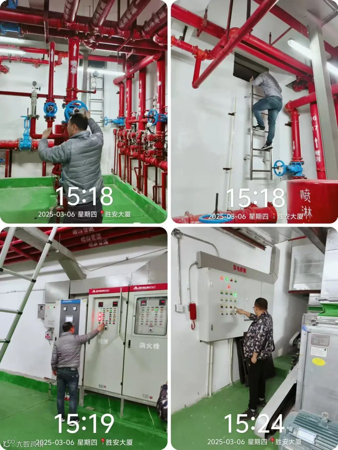 暴雨多发季节,工程部加强对供水系统、供电系统、排水系统等各类设施设备的检查、维护和维修,并做好台账记录,定期对所有设备机房进行除尘、除锈工作,确保大厦各类设施设备安全、稳定、正常运行。