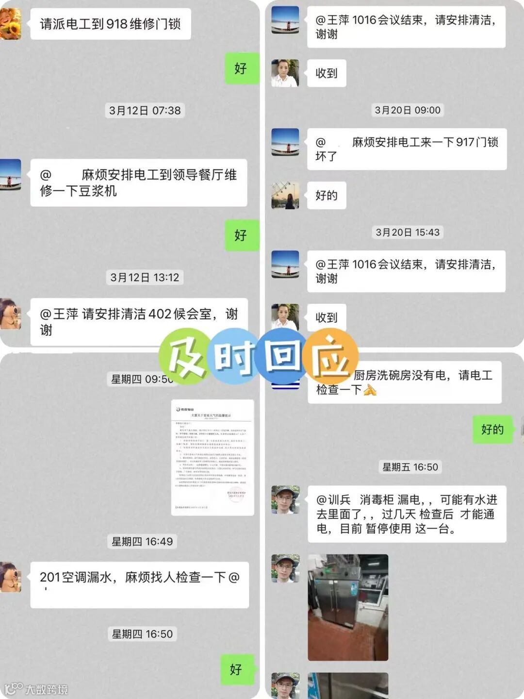 客服中心及时发送、张贴各类温馨提示,提醒广大客户提前做好相关的防御工作;