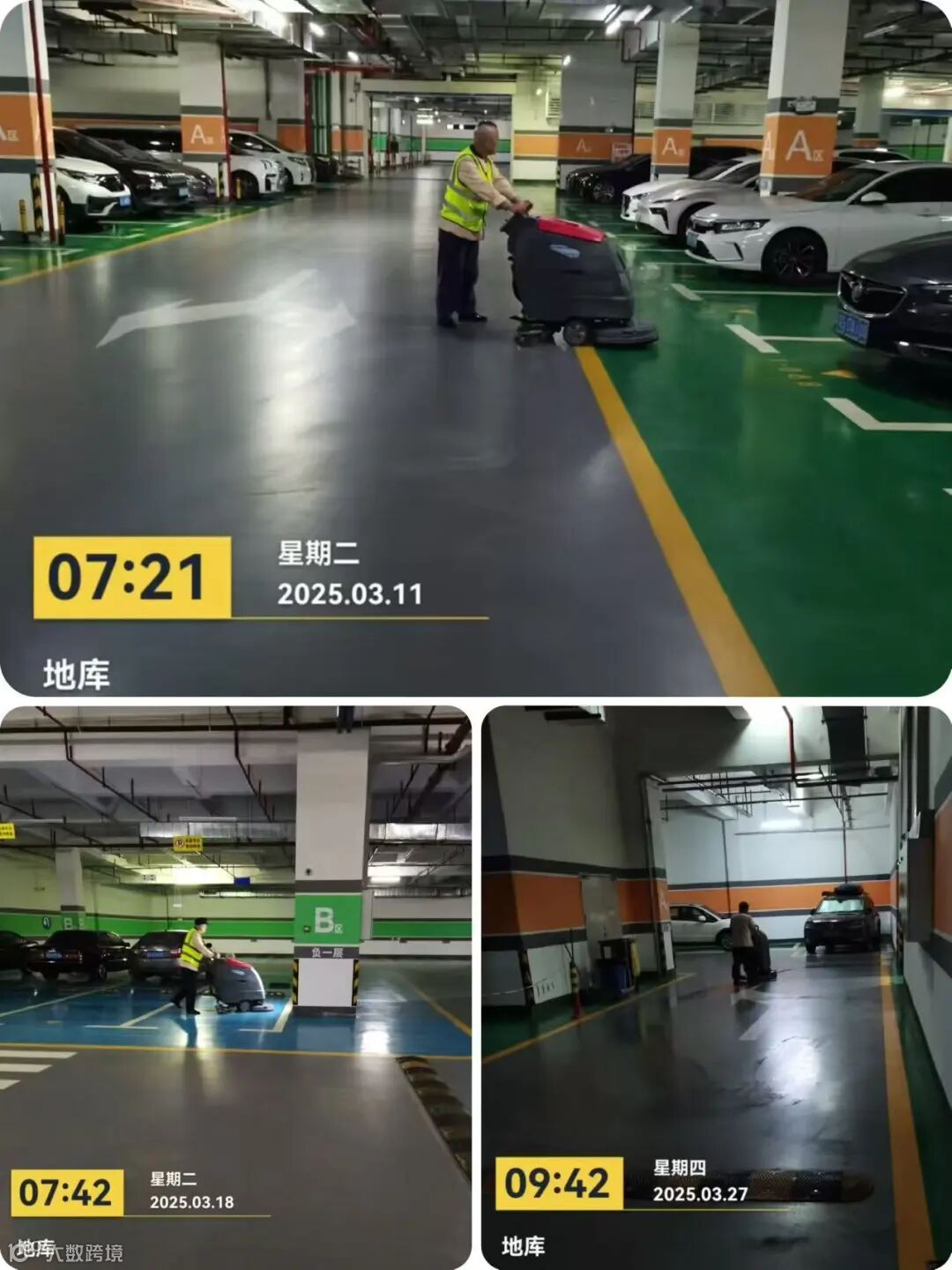 清洗地库地板