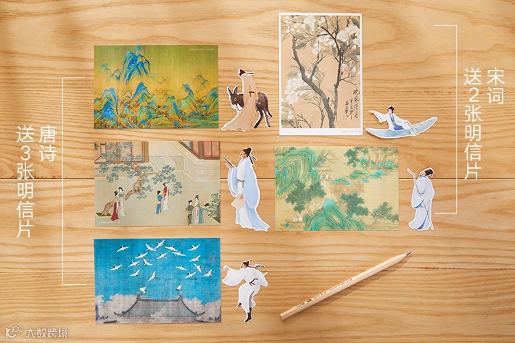 而且还赠送由名画制作的精美明信片,宛如古代艺术家“穿越时空”寄来的礼物。
