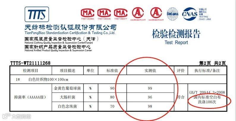 洗涤100次后依然有抗菌效果