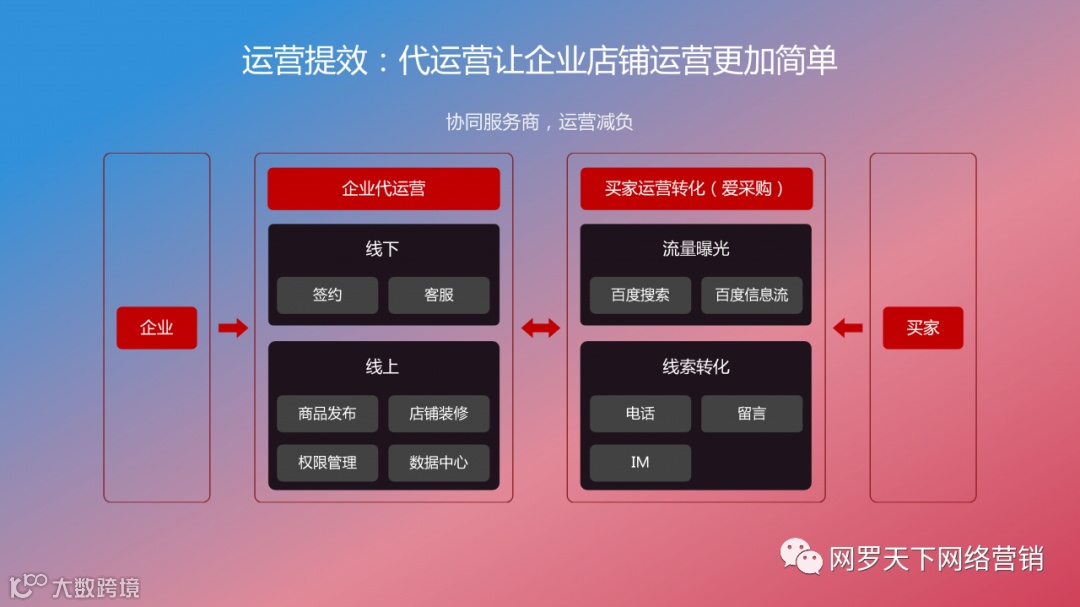 联系网罗天下完成入驻,我们拥有专业的行业推广能力,丰富的服务运营经验,选择网罗天下入驻百度爱采购,可以降低会员运营门槛;