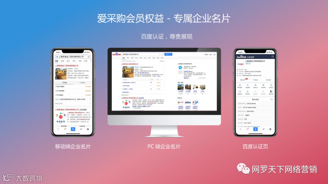 以上便是百度爱采购会员版本的详细介绍,如果您对百度爱采购会员版本还有不了解的地方,可以多多关注网罗天下,也可以直接跟我们取得联系;我司可以为您提供百度爱采购会员入驻以及百度爱采购会员代运营服务,为助力企业线上发展提供微薄之力。