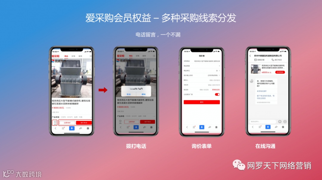 6.询盘线索分发:多种询盘方式分发购买意向信息,帮助卖家和买家撮合交易;