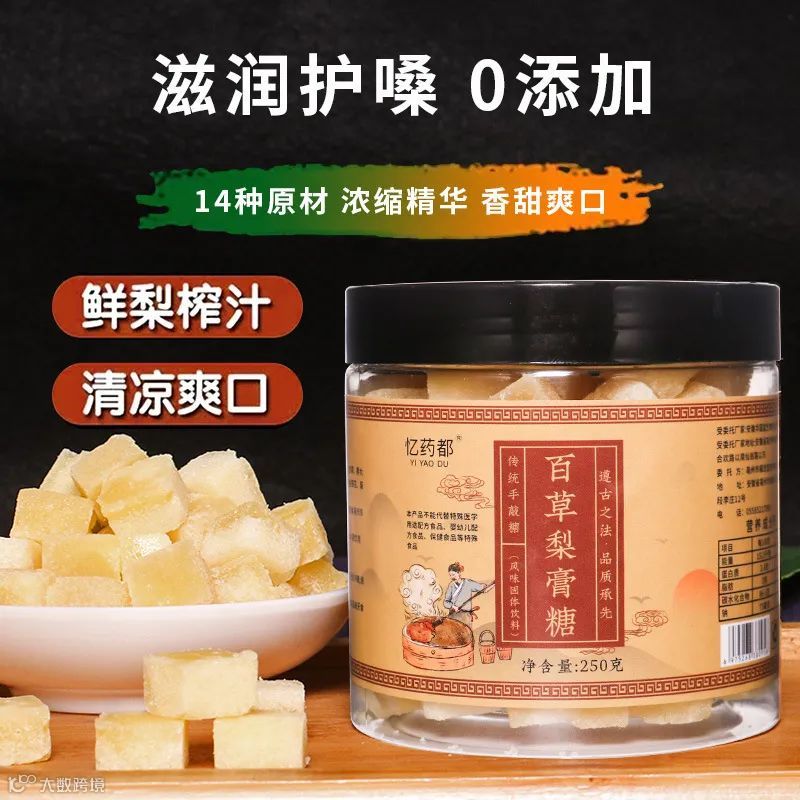 一块小小的梨膏糖,凝聚了薄荷、胖大海、枇杷叶、甘草等十余种食材。