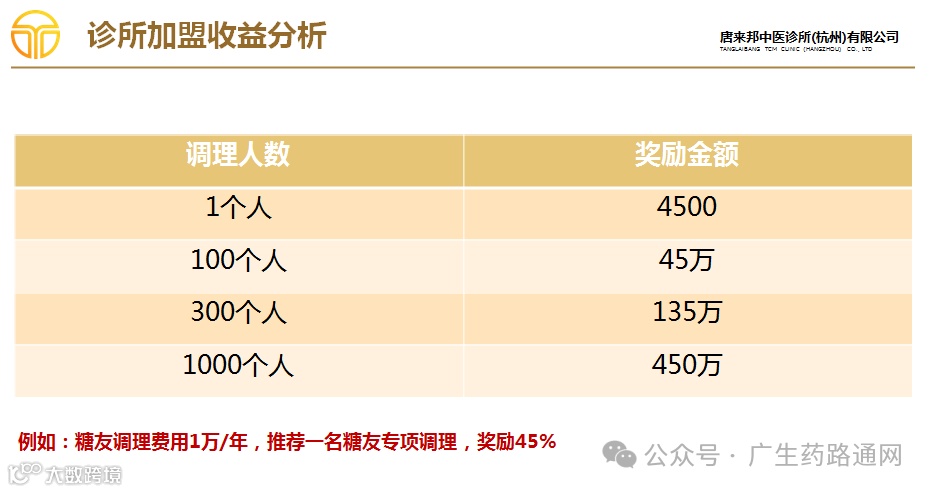 为了让好专家、好方案、好产品惠及更多“糖友”,唐来邦生物科技决定引入“三调通脉法”中医调理糖尿病体系及核心产品“三调通脉岐黄饮”,以“中医+营养+管理”三位一体的糖尿病解决方案赋能基层诊疗机构及基层医师,依托“唐来邦中医诊所(杭州)有限公司”,聘请王宏才教授出任唐来邦医学研究院首席中医专家,打造“全国糖尿病三调通脉法传承基地”、“王宏才教授传承工作室”及“《向病而生-糖尿病的起源、发生与重构》全国书友会”3块牌子+1个方子为核心的传承体系,大力发扬中医优势,造福广大百姓!