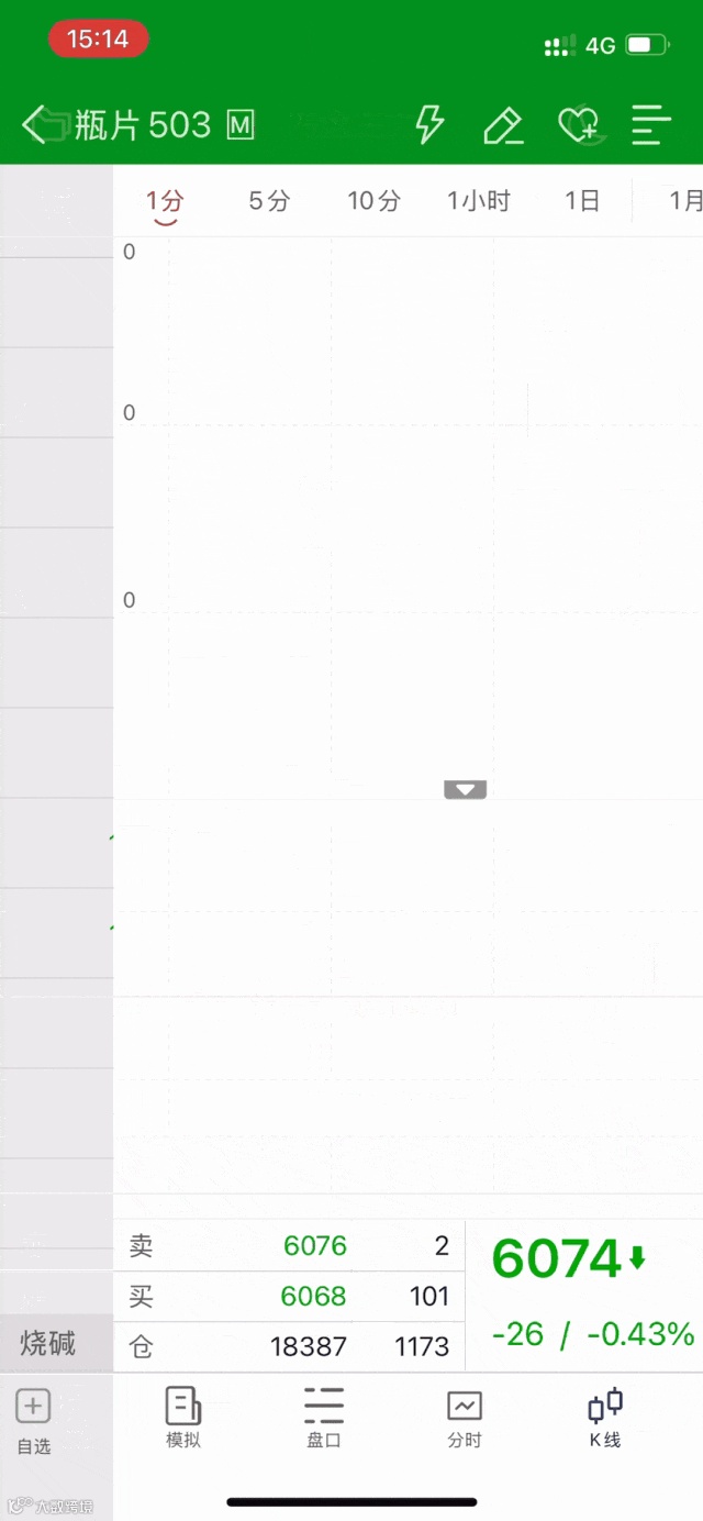 2、品种K线图右下角的模拟,点击模拟交易进入模拟交易界面。