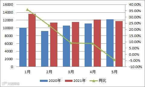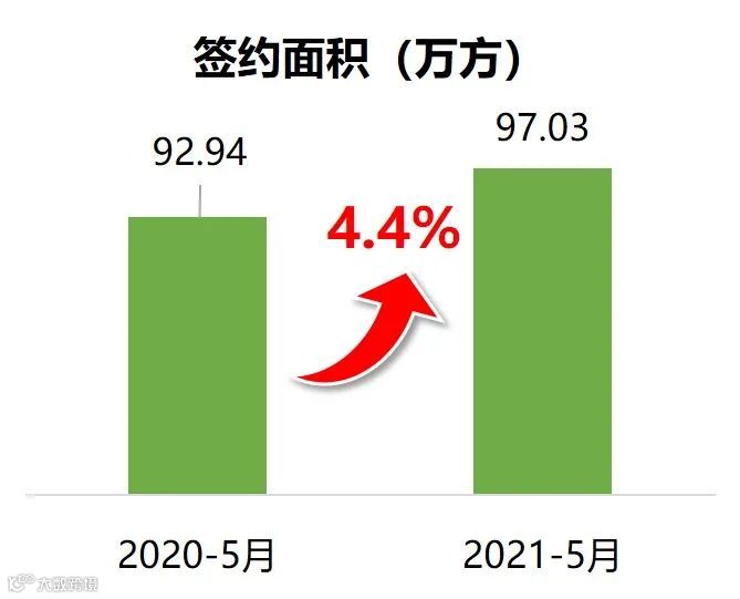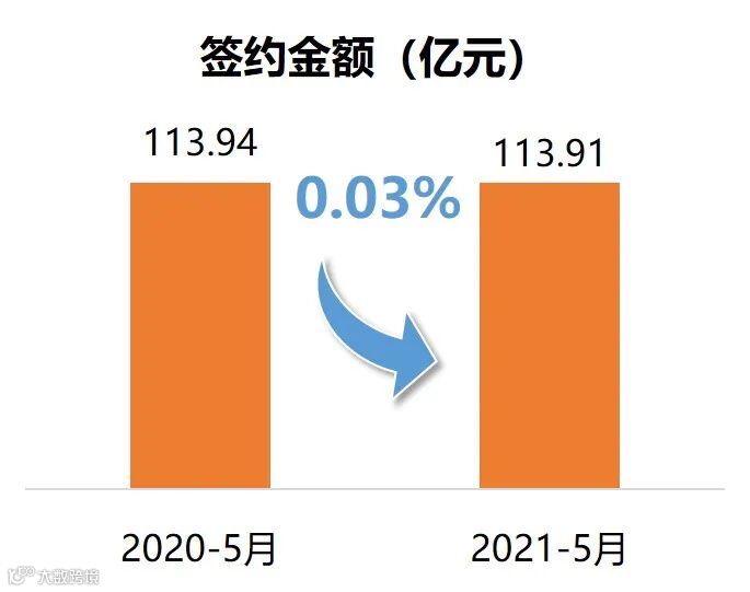 2021年5月,公司实现签约面积97.03万平方米,同比增长4.40%;签约金额113.91亿元,同比下降0.03%,签约均价11740元/平方米。