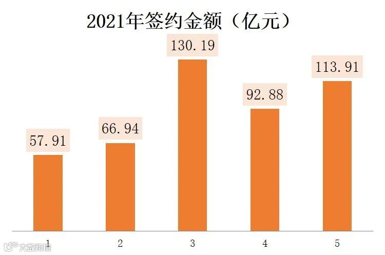 2021年计划实现签约金额1300亿元,1-5月计划完成率35.54%,较上年(计划完成率27.33%)同比提高8.21个百分点。