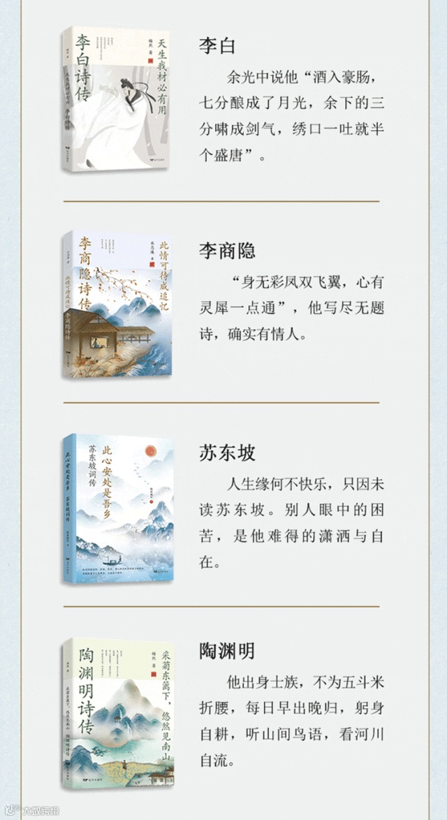 一套书既是人生传记,又是学诗词的好书,更是一趟高品位的人文精神之旅。