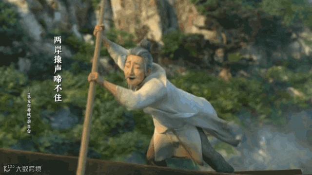如《长安三万里》里让无数人泪目的“轻舟已过万重山”。