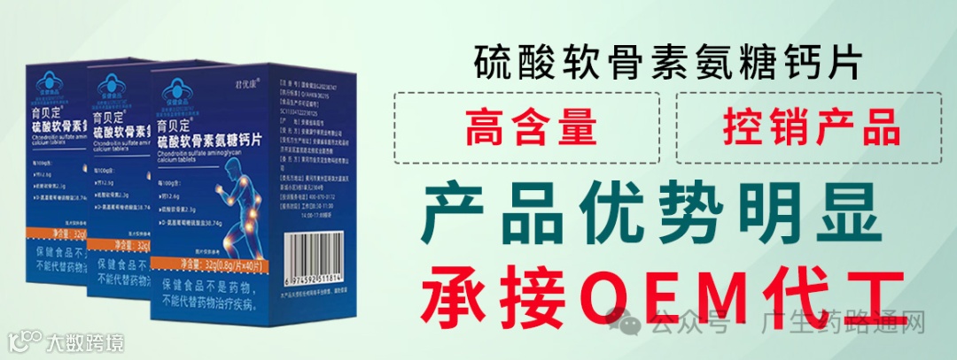 领先同类产品:每100g含:硫酸氨基葡萄糖38.74g、硫酸软骨素2.3g、钙12.6g