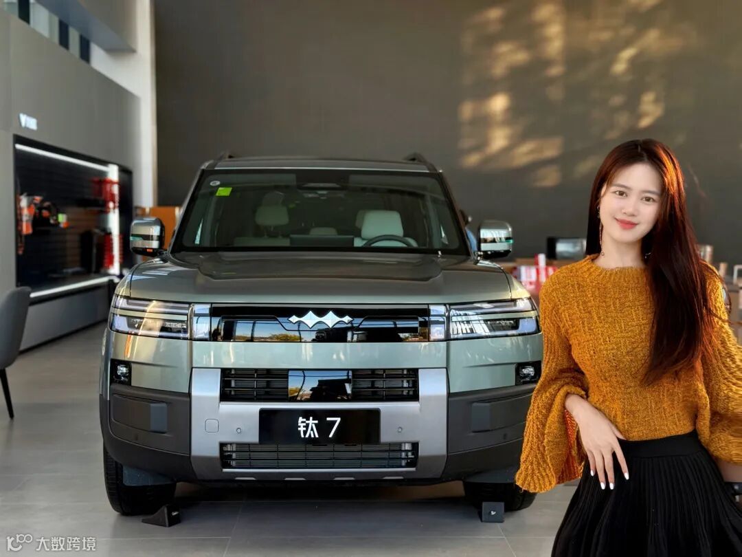 哈喽朋友们!今天带你们来方程豹店里看这台全网刷屏的钛7,这两年“方盒子”设计见了不少,但钛7一摆在那儿,还是会被惊艳到的程度,双L形灯带搭配方形头灯,如机械瞳孔般复古又前卫,车头标志性隆起,充满力量感。