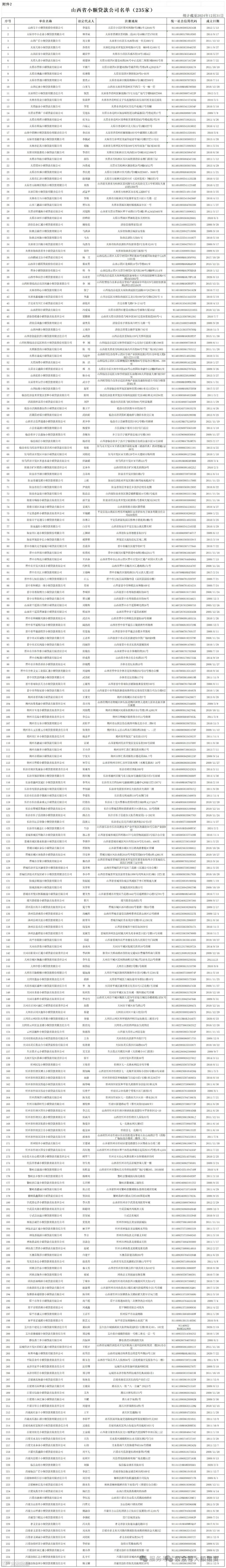 【大额融资】用机构的钱解决企业的资金困难!山西235家小额贷款公司!