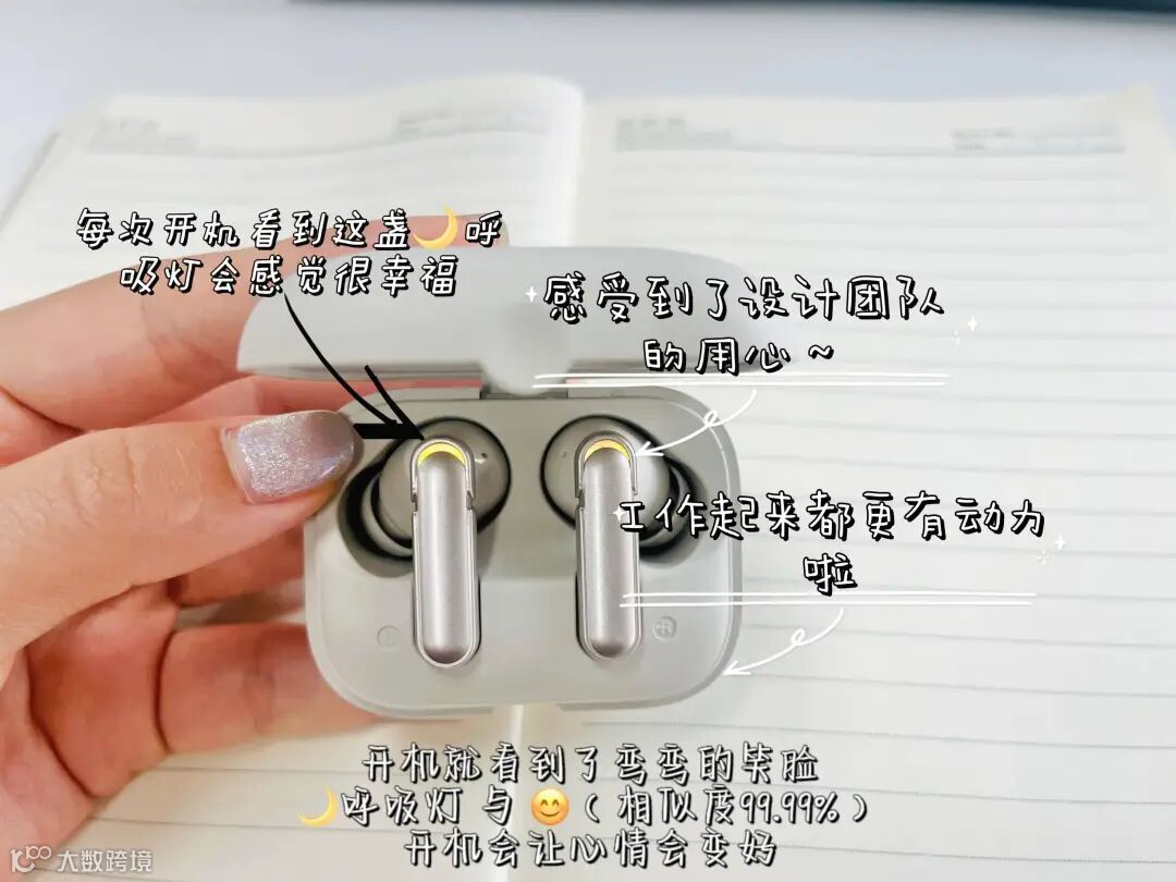 每次打开耳机盒心情都会特别好,因为耳机盒的三个月牙呼吸灯看起来特别像一个笑脸,虽然闺蜜不在身边,从她送的礼物里也感受到了她对我的关心。