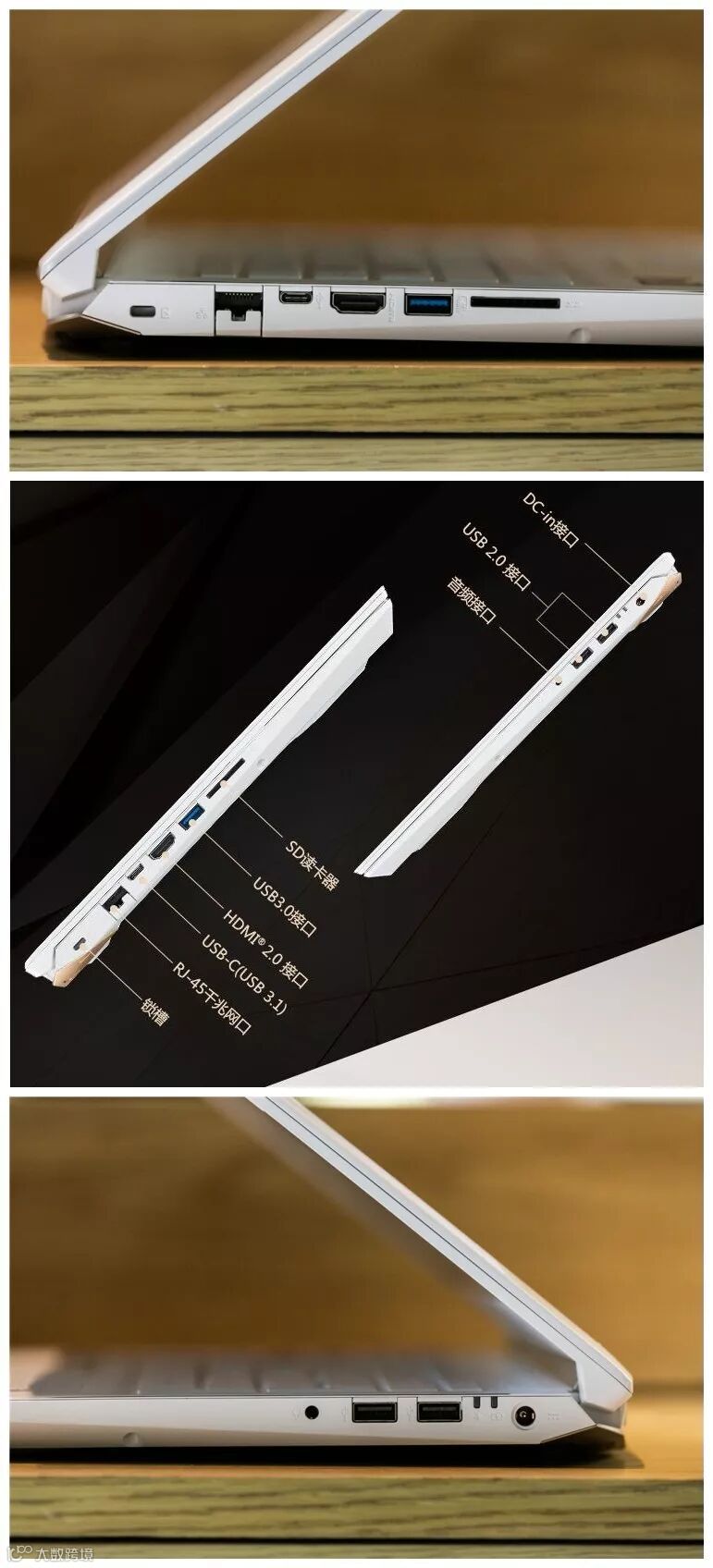 左侧面分别是安全锁、网线接口、USB 3.1、HDMI2.0、USB3.0和SD读卡器插槽,外界显示器非常方便,对于大数据的传输USB3.1的传输也能得心应手。机身右侧依次为3.5mm复合式耳机孔、两个USB2.0和DC-in电源插孔,对于电竞爱好者来说功能一应俱全。